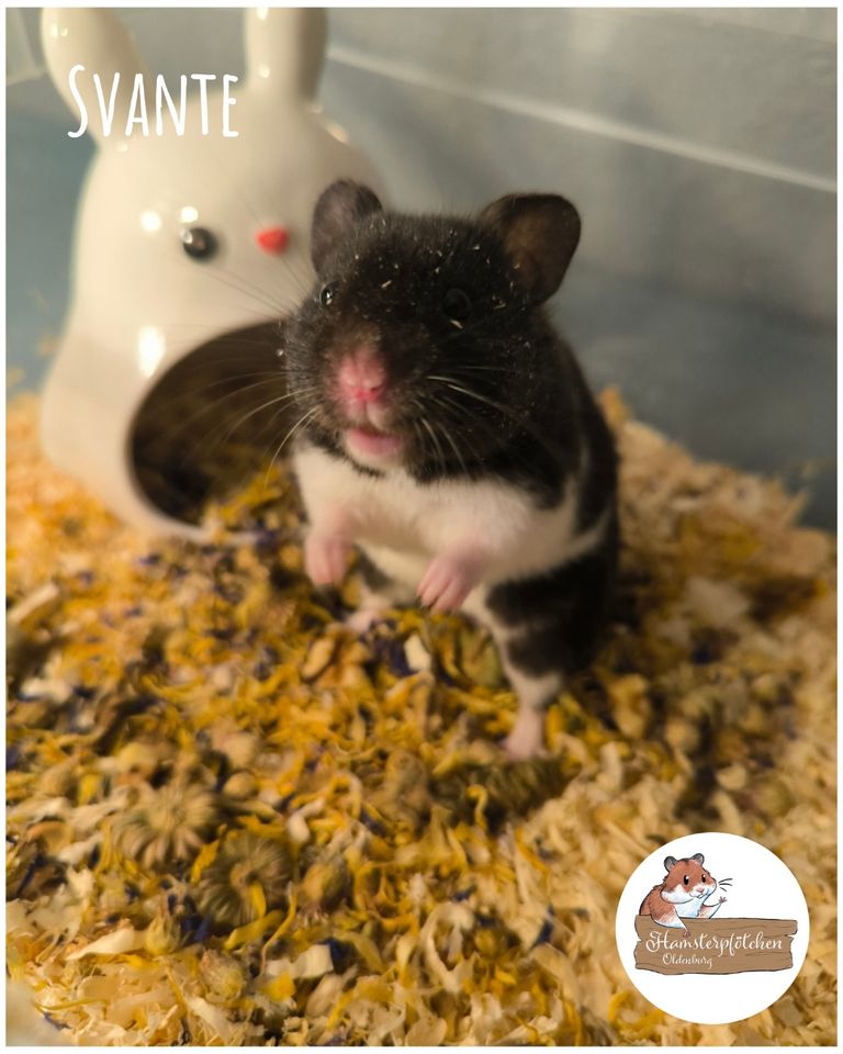 Svante ist ein hübscher, noch relativ junger Goldimann. Er ist neugierig, aber noch ein bisschen schüchtern. Mit ein bisschen Geduld und Bestechung in Form von leckeren Nüsschen wird er bestimmt noch zutraulicher werden. 🥰